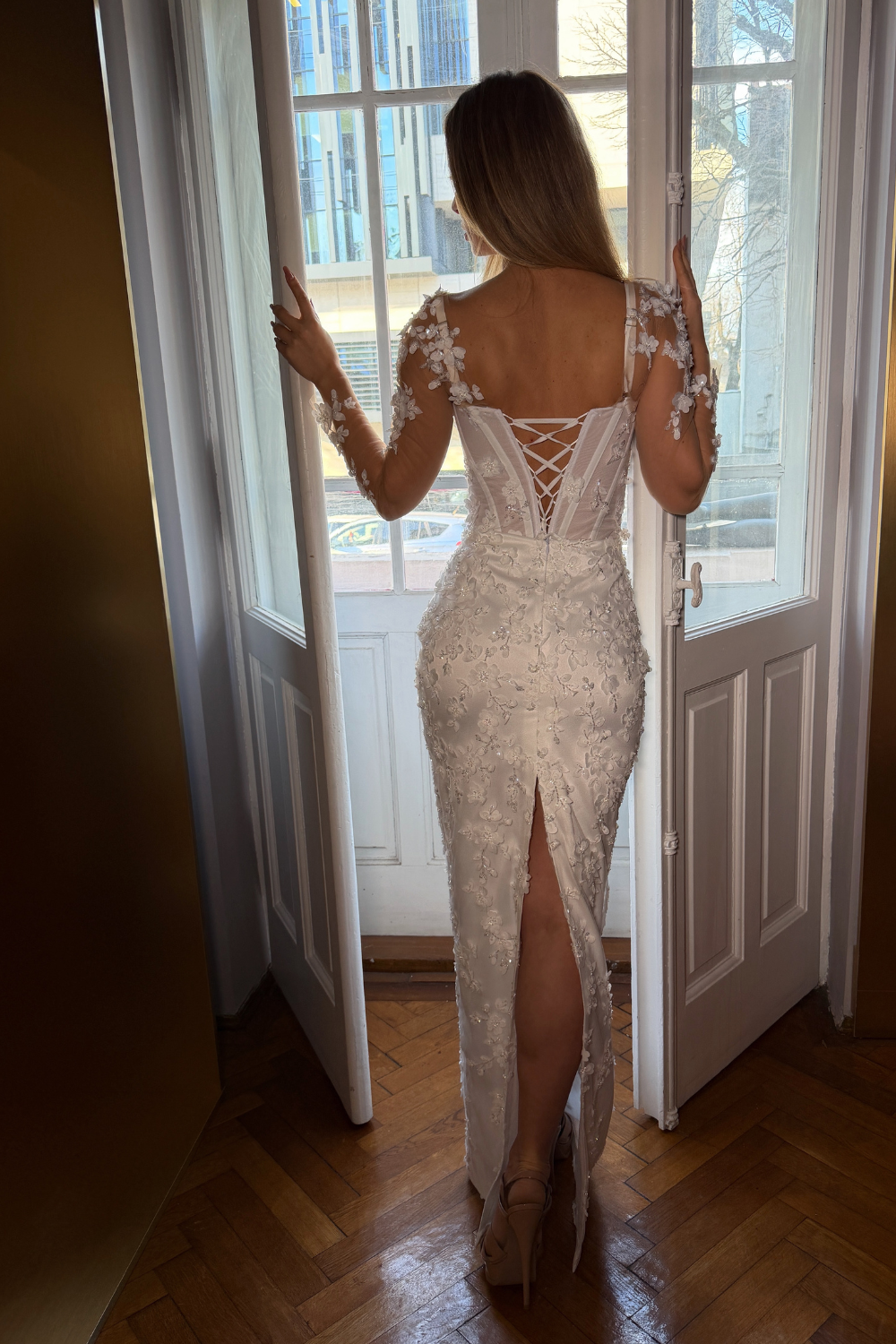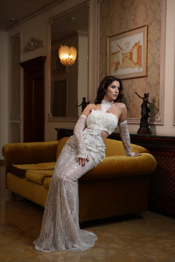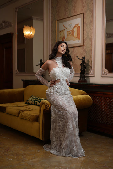 Rochia este atât de versatilă încât poate fi purtată fie ca rochie de cununie sau chiar de mireasă, putând fi chiar rochia a doua pentru miresele care ii doresc să schimbe mai multe ținute.
