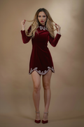Rochia elegantă Aylin din catifea este creată pentru femeile care iubesc stilul sofisticat și materialele luxoase. Realizată din catifea moale, cu un croi feminin ce urmărește linia corpului, rochia se remarcă prin modelul fustei curbat in formă de A -line decorat cu pietre.