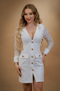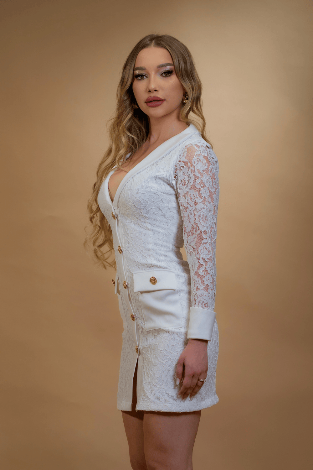 Rochie mini tip sacou, este potrivită pentru atât pentru ceremonii, petreceri, întâlniri importante sau evenimente de zi într-un stil elegant cât si pentru cununie. modelul rochiei este atât de versatil, încât ținută deschisă se poate purta ca un sacou. Design sofisticat, croială clară și material premium pentru un look modern și versatil.