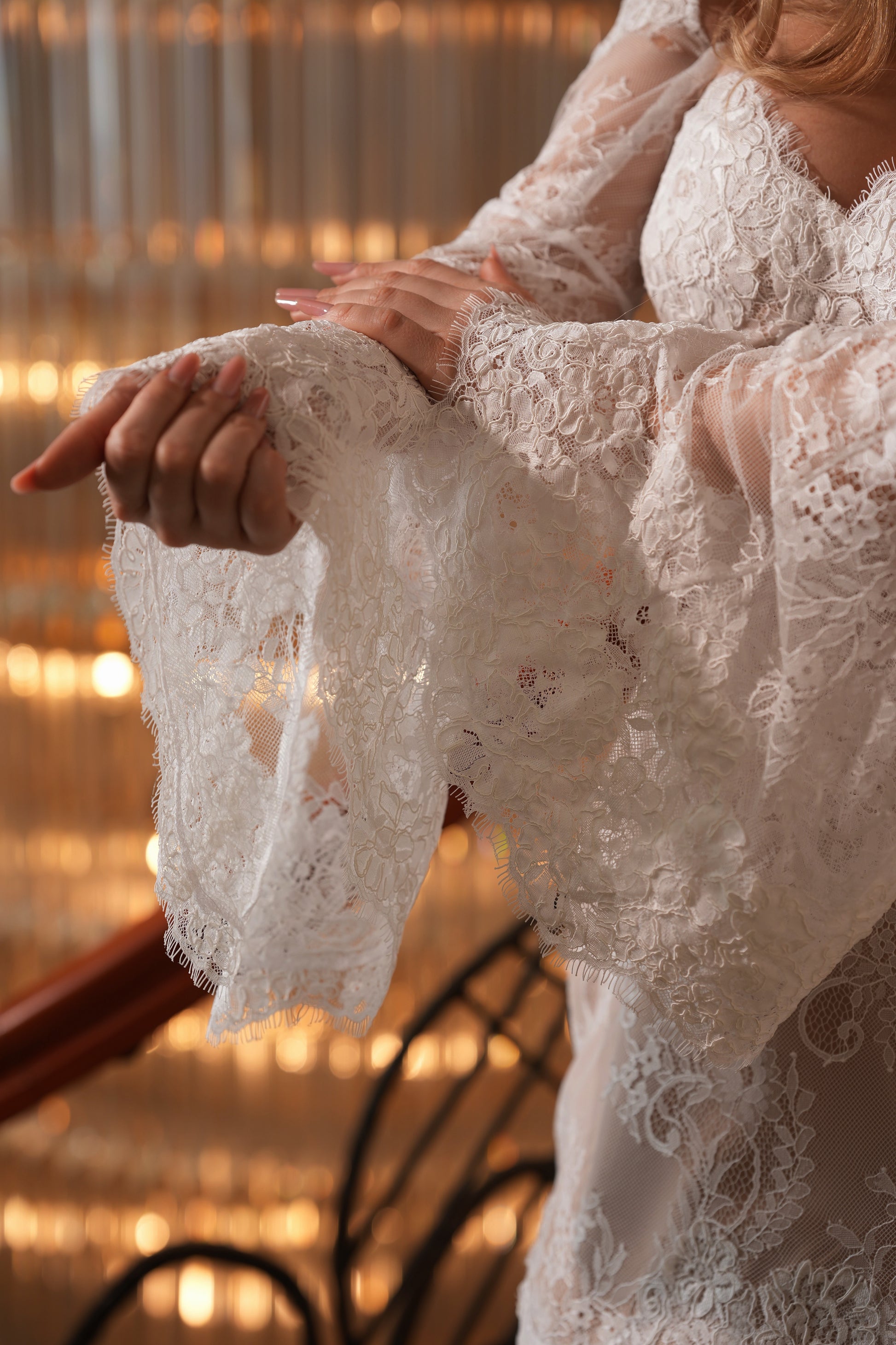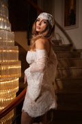 Rochia este compusă din corset cu cupe integrate si fusta ușor clopot. Mânecile detașabile sunt incluse în prețul afișat.