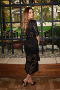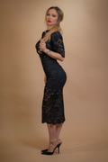 Descoperă eleganța atemporală cu această rochie midi din dantelă neagră, creată pentru femeile care vor să îmbine rafinamentul cu senzualitatea discretă. Confecționată din dantelă fină, cu un design ce conturează armonios talia și pune în valoare linia corpului, rochia oferă un look sofisticat, ideal pentru evenimente, cocktailuri sau seri speciale.