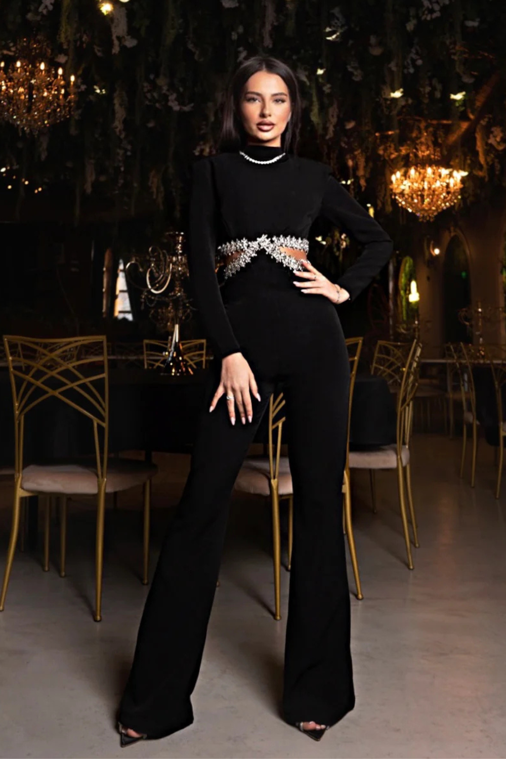Salopeta elegantă Fredys accesorizată cu cristale florale te va scoate cu siguranță din anonimat. Pantalonul cu talie înaltă va accentua linia corpului și va subția talia.