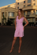 Modelul nostru are următoarele dimensiuni - bust: 86, talie: 62, șold: 90 și poarta măsura XS la acesta ținută.