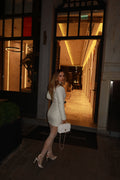 Compleul Ryan este realizat dintr-un material tweed fin, în nuanță off white, combinat cu accente discrete care îi conferă un look chic și contemporan. Sacoul scurt are croială ușor cambrată și nasturi statement, care nuanțează talia, iar fusta mini păstrează linia curată și alungită a siluetei. Țesătura texturată oferă structură, dar rămâne suficient de lejeră pentru mișcare și confort.