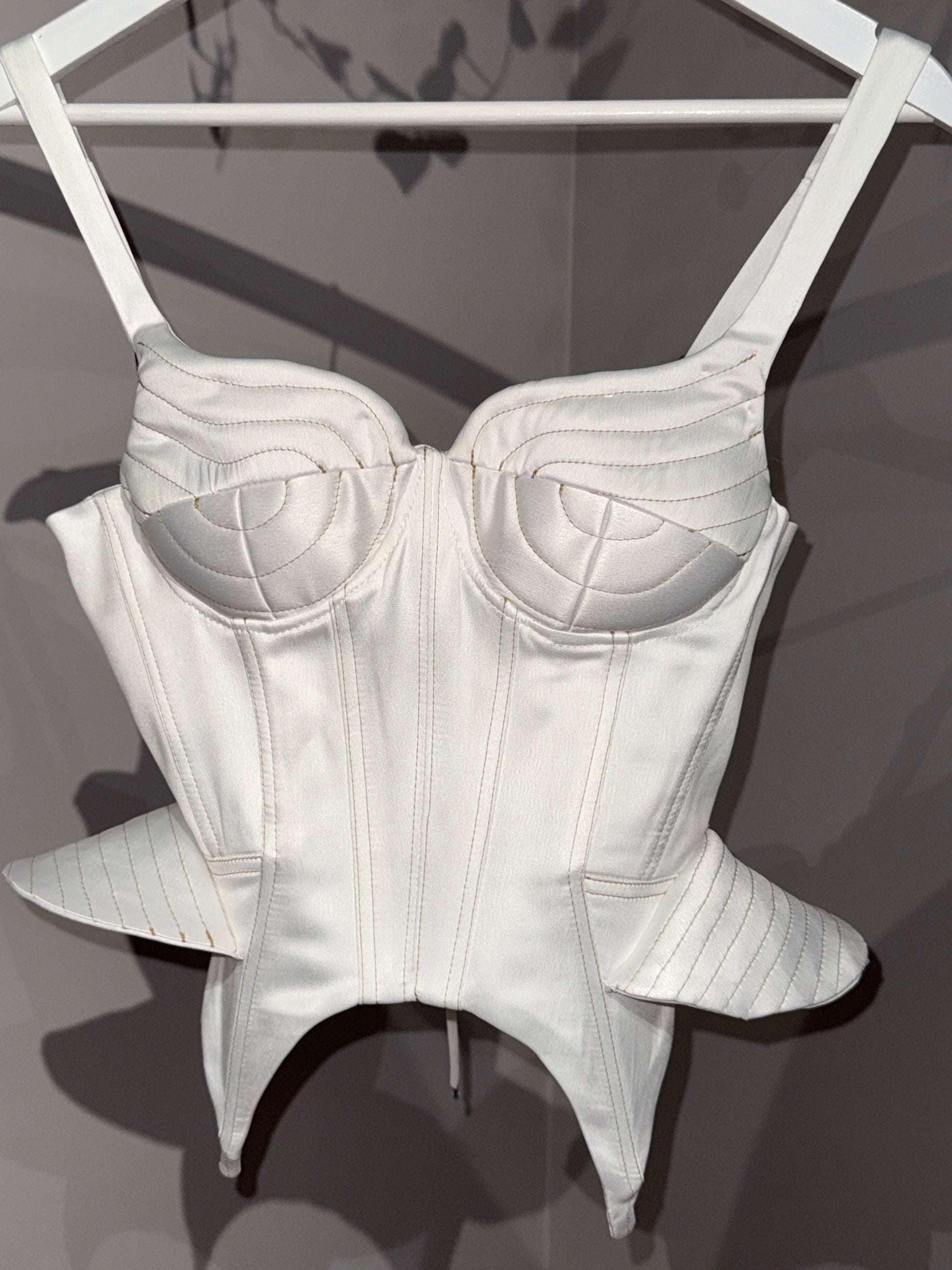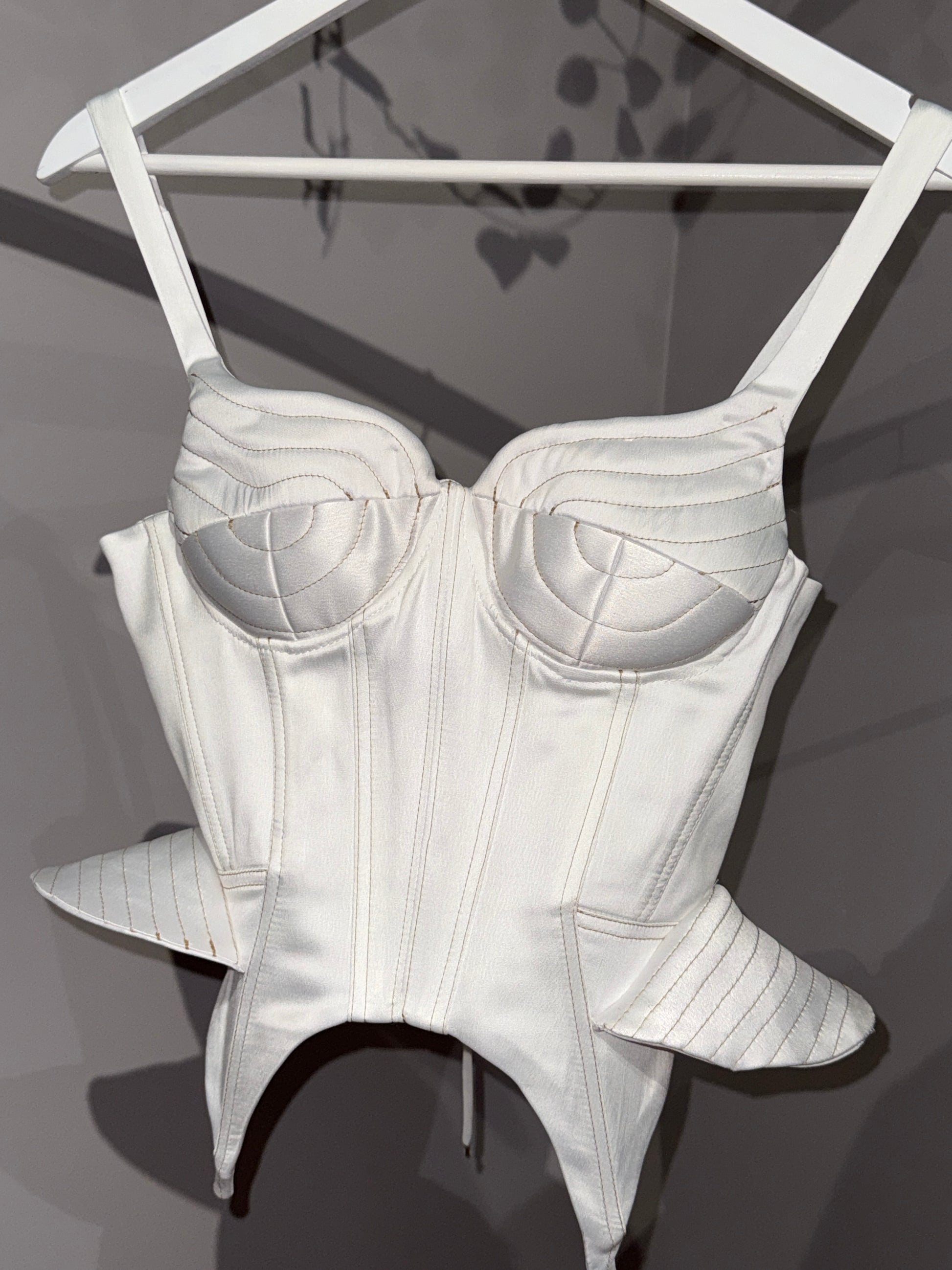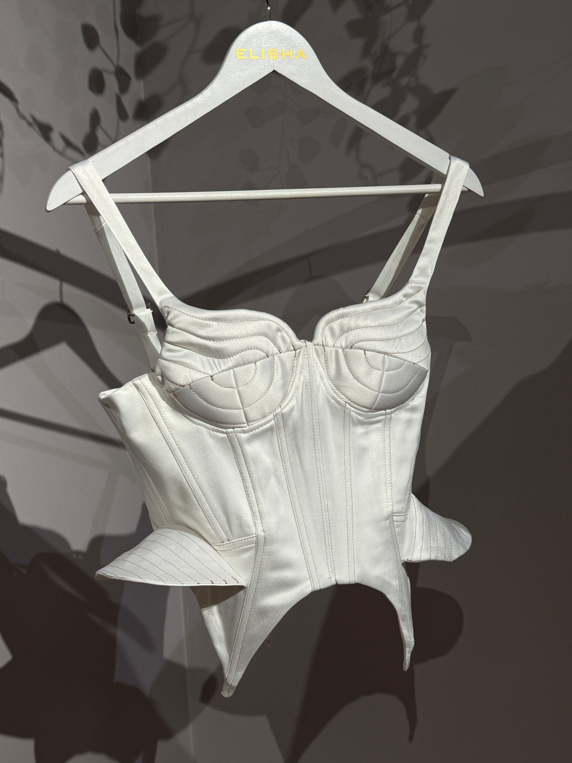 Topul Anne este o piesă sofisticată, inspirată din designul corsetelor clasice, reinterpretată într-o manieră modernă. Realizat dintr-un material premium, acesta prezintă cusături decorative contrastante, care accentuează structura și contururile piesei. Decolteul în formă de inimă adaugă un aer feminin și rafinat, în timp ce bretelele subțiri oferă un echilibru între eleganță și funcționalitate.
